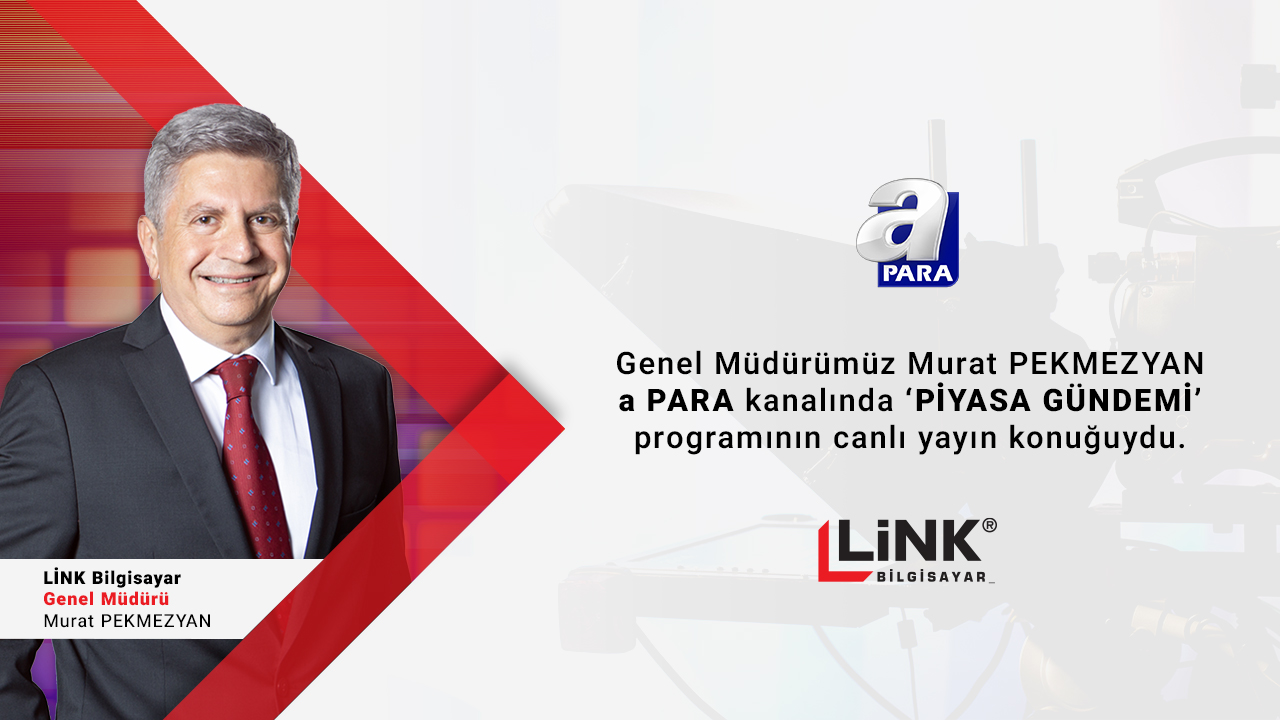 Link Bilgisayar Genel Müdürü Murat Pekmezyan, A Para ekranlarında yayınlanan Piyasa Gündemi programının canlı yayın konuğu oldu.